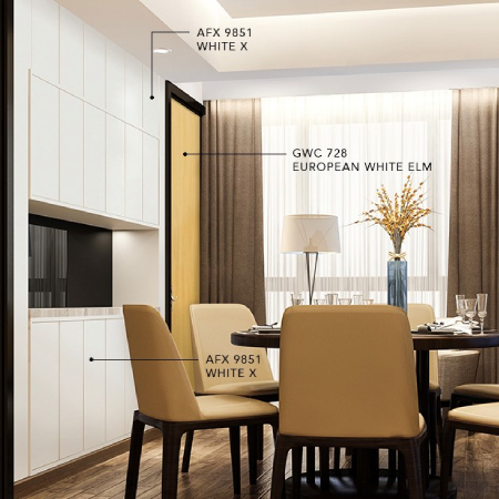 The AFX Range is a premium collection of compact high-pressure laminates crafted from high-quality kraft and decorative papers. For added convenience, AFX laminates are also available pre-applied on MDF boards, ensuring a smooth finish and faster installation.