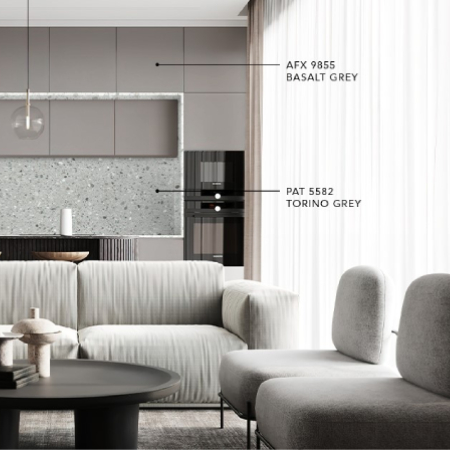 The AFX Range is a premium collection of compact high-pressure laminates crafted from high-quality kraft and decorative papers. For added convenience, AFX laminates are also available pre-applied on MDF boards, ensuring a smooth finish and faster installation.
